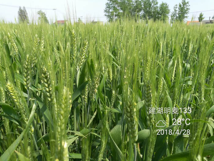特征特性:春性中熟小麥品種,成熟期比對照揚麥20早近2天。幼苗直立,葉色較深,分蘗力中等。株型松散,抗倒性中等。穗層整齊,熟相較好。穗紡錘形,長芒、白殼、紅粒,籽粒半硬質。區試平均結果:全生育期205.7天,株高84.4厘米,每畝有效穗32.2萬,每穗37.3粒,千粒重42.9克。經江蘇省農科院植保所兩年接種鑒定:中抗赤霉病(嚴重度1.92-2.47),中感紋枯病,高感白粉病,感黃花葉病毒病。經江蘇省農科院糧作所鑒定:抗穗發芽。品質經農業部谷物品質監督檢驗測試中心測定,兩年平均結果:粗蛋白(干基)15.7%,濕面筋33.3%,吸水量62.8ml/100g,穩定時間9.3分鐘,最大拉伸阻力528Rm,135E.U,拉伸面積133cm2。2015年檢測粗蛋白(干基)15.6%,濕面筋34.8%,吸水量60.8ml/100g,穩定時間13.2分鐘,最大拉伸阻力550Rm,135E.U,拉伸面積140cm2,達國家級品種審定強筋小麥標準。