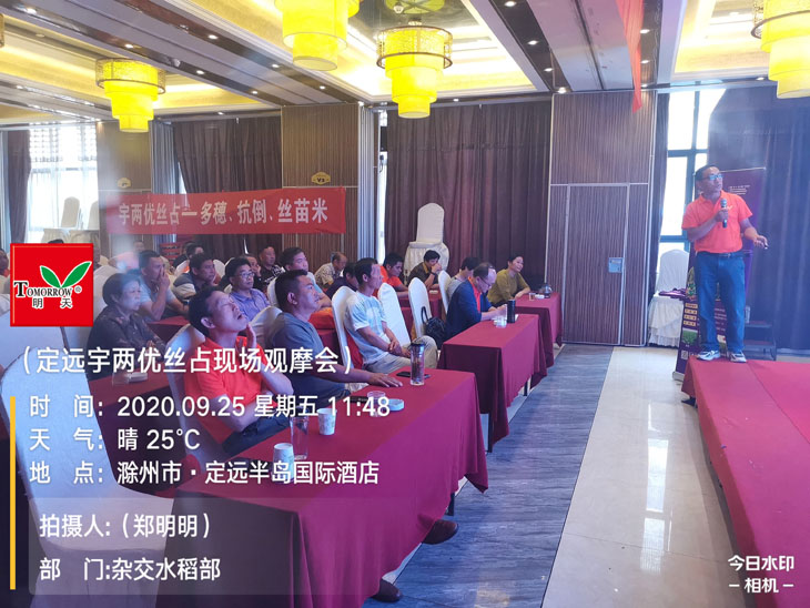 秋高氣爽,天公作美,9月24日-25日,2020年度江蘇明天種業(yè)科技股份有限公司“宇兩優(yōu)絲占”安徽省現(xiàn)場觀摩會(huì)在安徽定遠(yuǎn)成功召開,公司總經(jīng)理助理?xiàng)詈2ǎs交水稻部副經(jīng)理丁震、定遠(yuǎn)縣總代理鄭守健以及安徽省其他各縣代理商相聚在總理故鄉(xiāng)定遠(yuǎn),共同見證宇兩優(yōu)絲占在大田的優(yōu)異表現(xiàn)。
