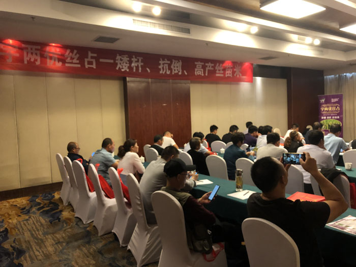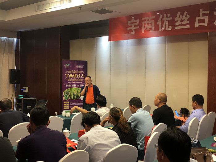 此次會議分為“品種特征特性介紹”、 “后續品種介紹”兩部分。會議首先對各遠道而來的客人表示熱烈歡迎,并希望宇兩優絲占的推廣能夠為江蘇雜交水稻產業發展做出新貢獻,為各核心代理商帶來新的機遇。