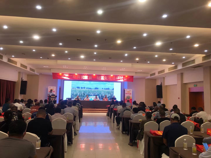 金秋九月,金黃的稻谷隨著秋風(fēng)翻起金波,豐收在即。公司于9月28日-29日在江蘇省泗陽縣新世界大酒店隆重召開 “明兩優(yōu)絲苗”輕簡化栽培研討會暨田間觀摩會議。會議有幸邀請到泗陽縣農(nóng)業(yè)農(nóng)村局陳春化局長致辭,泗陽縣作栽站范輝站長參加;參加會議的還有江蘇明天種業(yè)科技股份有限公司副總經(jīng)理胡玉成、總經(jīng)理助理楊海波及公司代表,各縣市經(jīng)銷商、種植大戶、育秧合作社代表共計200余人參加會議。