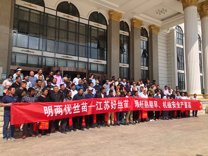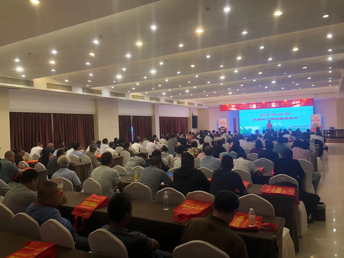 接著由盧偉林經(jīng)理向參會代理商、種植大戶、育秧合作社代表介紹明兩優(yōu)絲苗的特征特性以及最近幾年各縣市種植田間表現(xiàn)情況。盧經(jīng)理介紹到隨著土地流轉(zhuǎn),種植大戶越來越多,雜交水稻移栽成本居高不下、人工緊缺,大戶用工難、收益低。明兩優(yōu)絲苗的生育期、抗倒性、抗病性及產(chǎn)量結(jié)構(gòu)就特別適合當(dāng)下種植大戶和育秧合作社做雜交稻機插種植。因此雜交水稻的輕簡化栽培勢不可擋,明兩優(yōu)絲苗應(yīng)勢而出,適時填補了江蘇淮北雜交水稻機插合法品種的空白。同時詳細(xì)介紹了明兩優(yōu)絲苗的栽培管理措施。