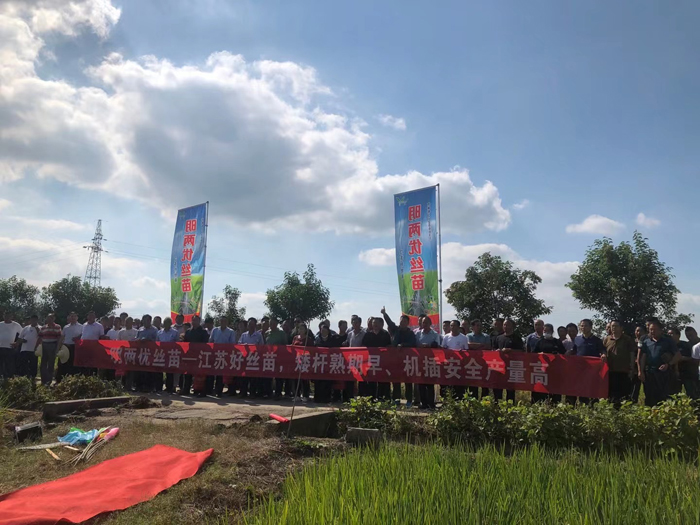 接著由泗陽縣種植大戶就明兩優(yōu)絲苗在泗陽種植、品種田間表現(xiàn)、肥料運籌情況作了詳細(xì)分享。種植戶認(rèn)為明兩優(yōu)絲苗:第一、熟期早特別適合江蘇淮河以北機插、沿淮直播,第二、株高矮、株型緊湊、抗倒性強,第三抗病性強,示范及種植四年田間無病害。是一個非常具有推廣價值和前景的大品種,同時也是一個淮河以北稀缺的雜交水稻機插合法品種。