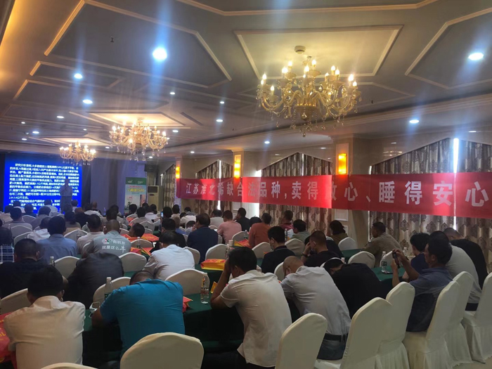 此次會議分為“品種特征特性介紹”、 “栽培技術培訓”兩部分。會議由江蘇明天種業雜交水稻部高俊賢主持,高部長對各遠道而來的客人表示熱烈歡迎,并希望寧兩優1513的推廣能夠為江蘇雜交水稻產業發展做出貢獻。