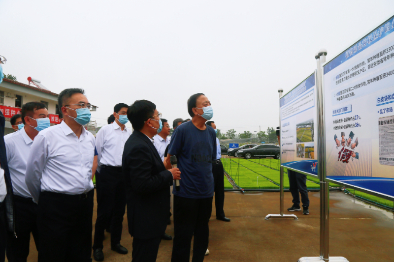 5月30日下午,全國人大常委會副委員長、九三學社中央主席武維華率隊到江蘇明天種業科技股份有限公司淳化科研基地調研。全國人大常委會委員、全國人大農業與農村委員會副主任委員蔣超良、范驍駿、王剛,全國人大農業與農村委員會委員孫其信、錢前,全國人大代表陳凡,中國工程院院士萬建民,江蘇省人大常委會副主任魏國強,江蘇省農業農村廳廳長季輝,南京市人大常委會主任龍翔等省市領導參加了調研活動。公司總經理嚴輝民介紹了公司基地科研情況、植物新品種權保護情況和公司發展情況。